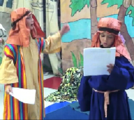 Camera, Action - Gospel of Mark." First, we tell the story to the kids, then we select volunteers to do the parts, pass out skits and they go off and get into costumes, while the other children come to tables where we have a coloring and activity pages and a snack. When the kids are all costumed up we move back to the chairs to watch the skit. Then we end with the discussion questions. Sometimes we have a contest, usually boys against girls, to answer both the review questions and then other basic bible trivia questions. We didn't ever get to doing the videotaping of the skits and watching them, but maybe another year. We were blessed to have several painted backdrops from plays done in the past. This gave us a defined area that we do the teaching & the skits. It is such a blessing to see how God pulled all these things together for His good purposes. Thank you for making these skits available at such a reasonable price!"
