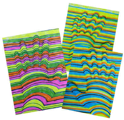 with markers, buttons, sequins, feathers, beads.)