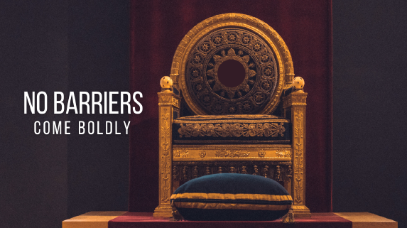 barriers. Those who trust in Jesus are given the right to enter into God’s holy throne room! We won’t be pushed back or put in the street. We can present our requests to the KING OF KINGS. And in that